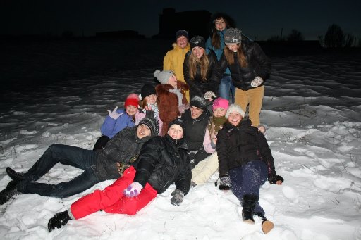 Потом все дружно сели пить чай с печеньками, набрались сил и все вместе отправились кататься на санках. Снег был не очень скользкий, но мягкий, поэтому разразилась снежная битва, в которой больше всего досталось Арсену. Было весело, но быстро стало темнеть.
