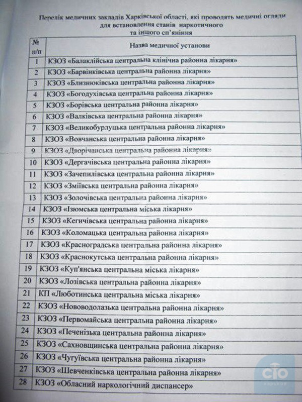 Перечень медицинских учреждений Харькова, для проведения освидетельствования.