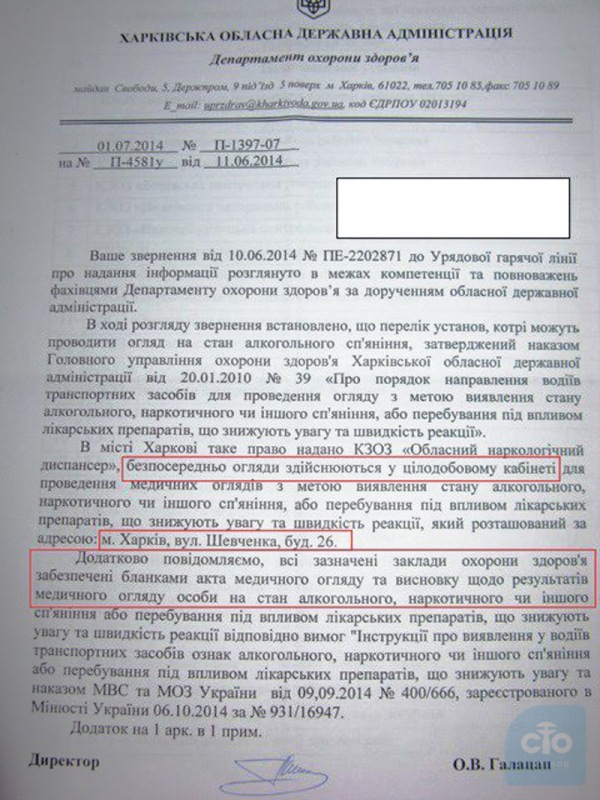 Хочу отметить, что на основании совместного приказа МВД и МОЗ 400/666, проведение такого освидетельствования проводится исключительно в тех учреждениях, которые утверждены областными администрациями.