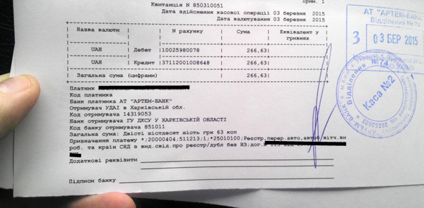5. Параллельно, пока Вы стоите в очереди на осмотр — можете заплатить госпошлину в ближайшем банке (АртемБанк) — госпошлина составляет 390 грн. + комиссия банка.